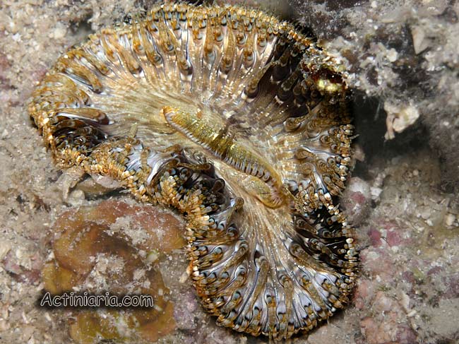 According to Manuel (1988) Cereus pedunculatus is "equally at home on hard substrata or buried in mud or sand." This species is characterized by wide oral disc and short and very numerous tentacles. Cereus pedunculatus distributed in west Europe and in Mediterranean. Cereus herpetodes is a related species from Chile.
