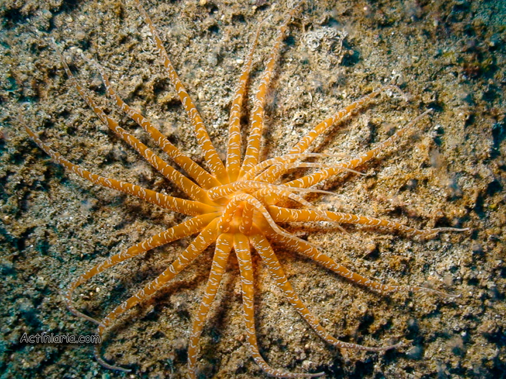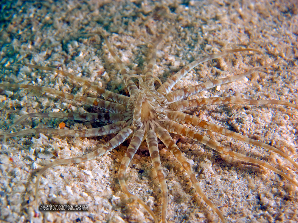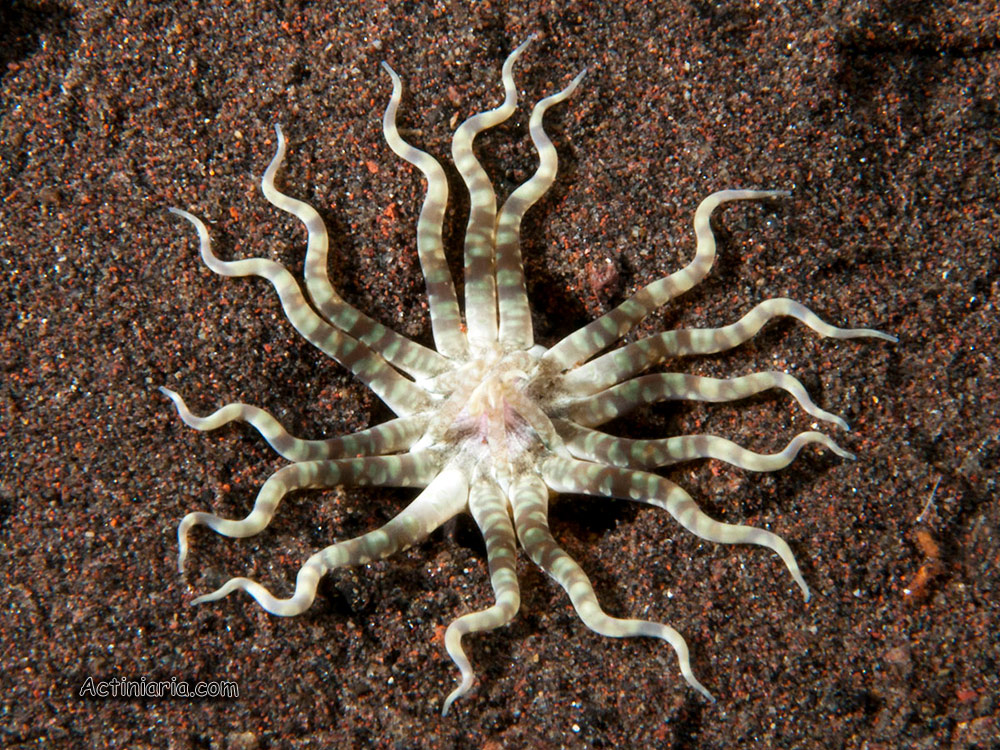 The same species as above: the color pattern on the tentacles is exactly the same, but the background color much darker