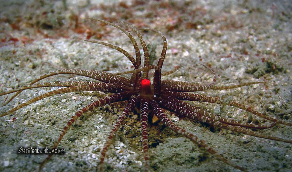 Long cylindrical tentacles as in specimen above but different color and pattern of color spots